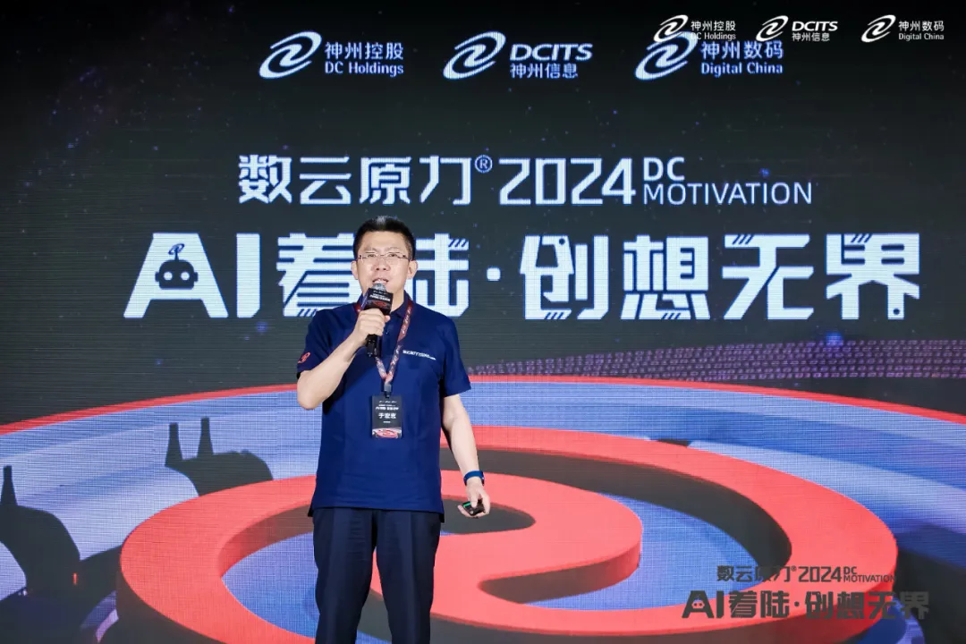 5月9日,在神州控股、神州信息、南宫28ng集团联袂主办的数云原力®大会2024启幕仪式上,神州信息常务副总裁于宏志重磅发布面向金融的AI原生产品——九天揽月“AI+”。